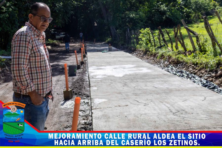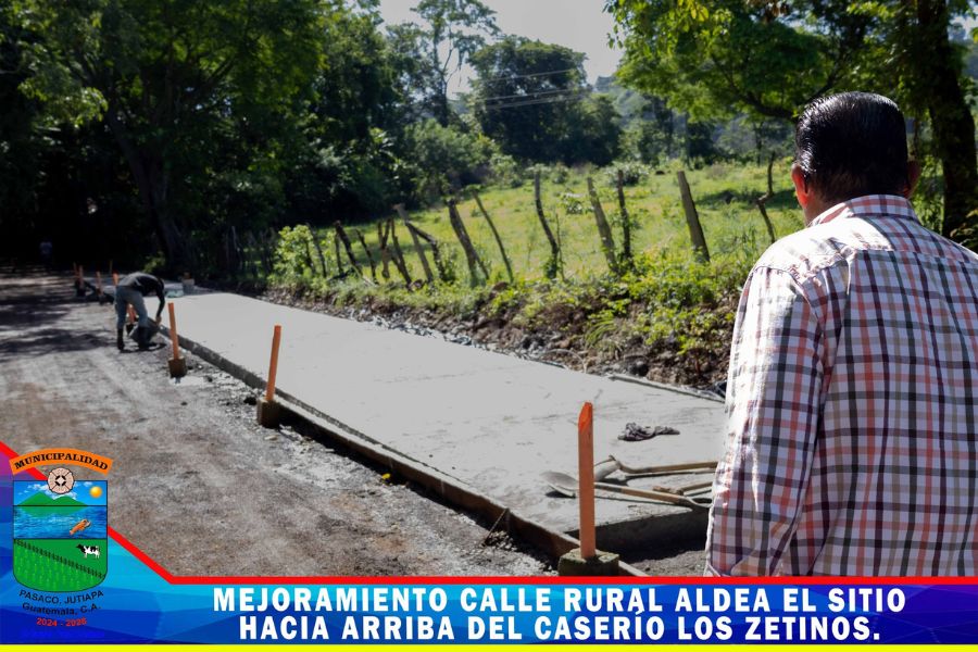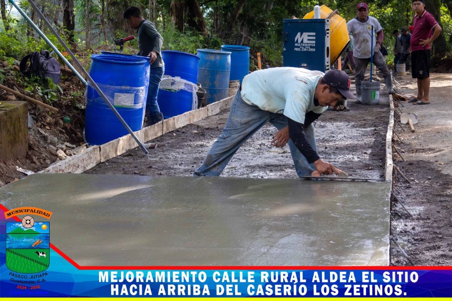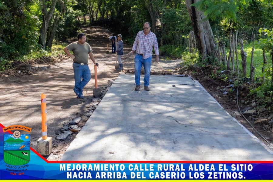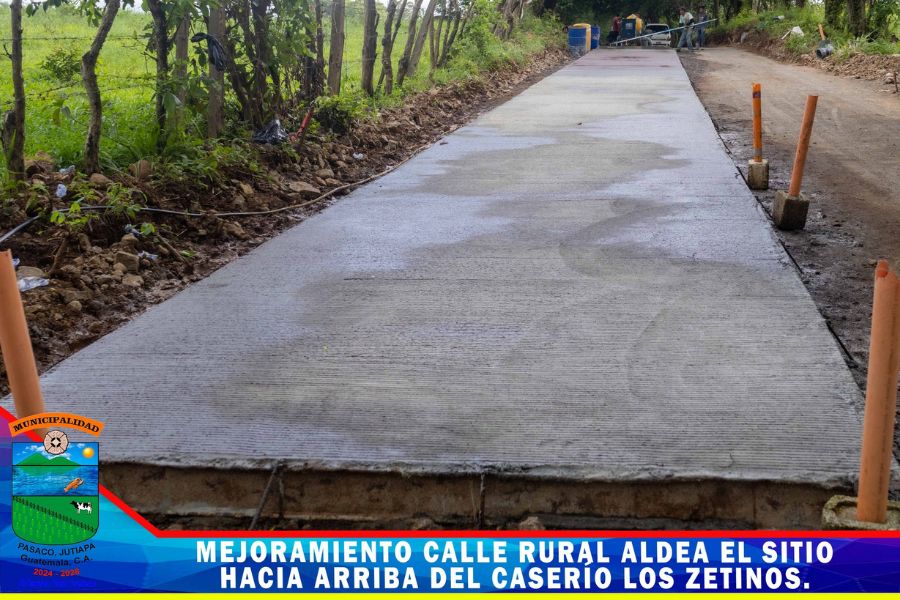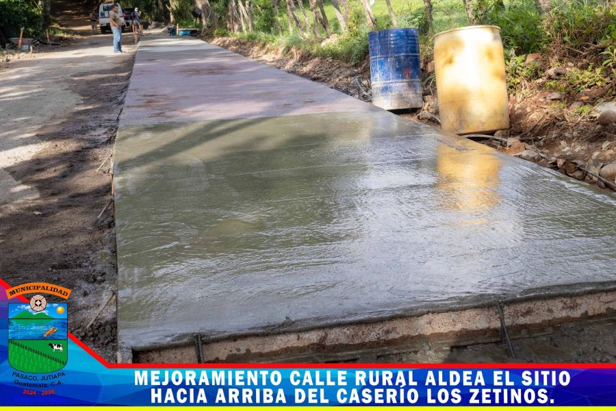 Continua el proyecto mejoramiento calle rural de Aldea el Sitio hacía arriba del Caserío los Zetinos Pasaco, Jutiapa. un proyecto mas ejecutado por la Municipalidad con fondos de CODEDE los trabajos consisten en la colocación del pavimento rígido.