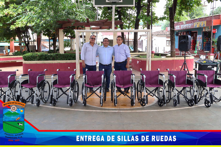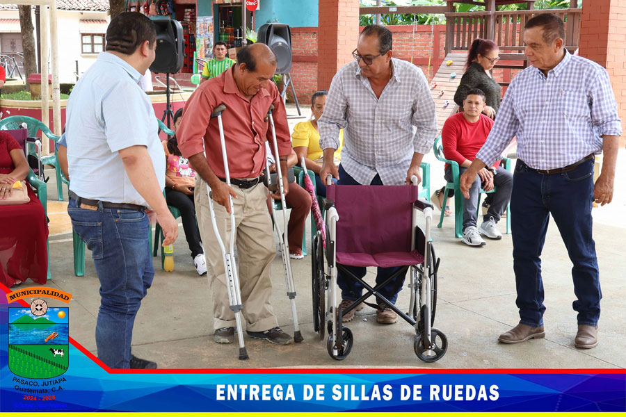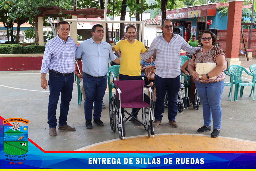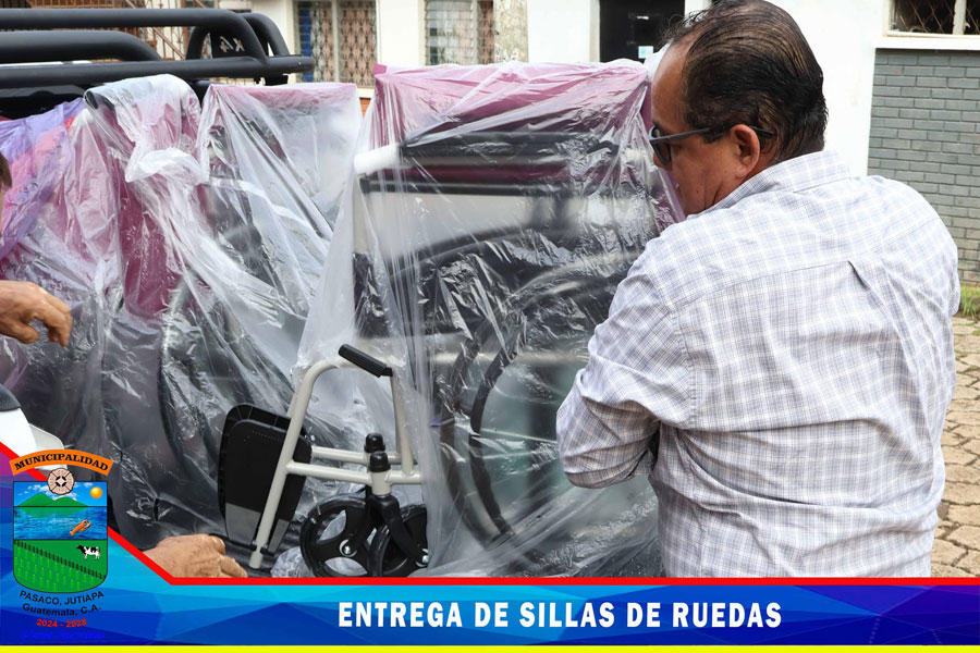 Entrega de sillas de ruedas a representante de personas con discapacidades diferentes