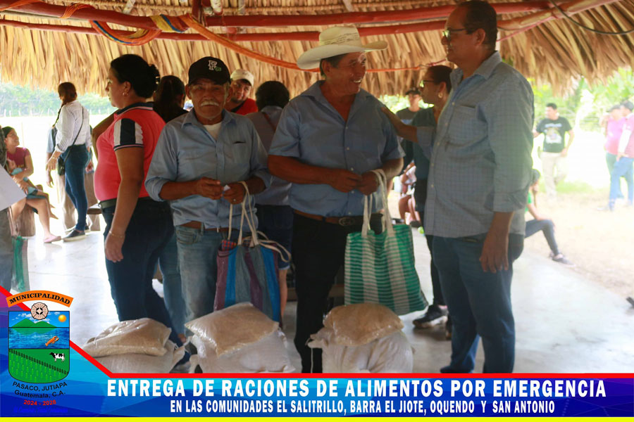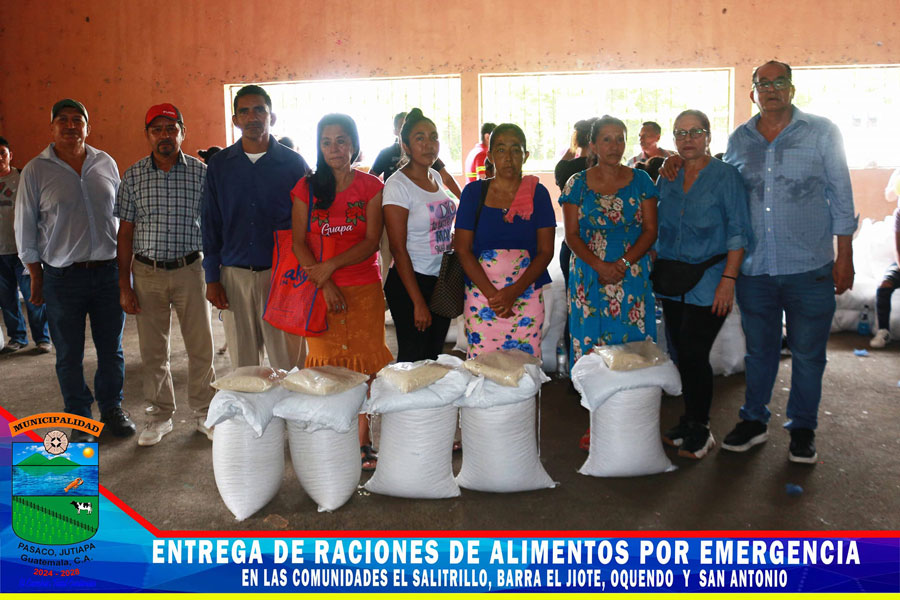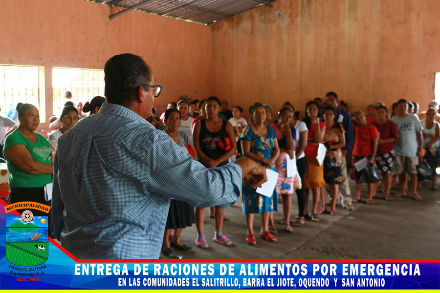 Entrega de raciones de alimentos por emergencia en las Aldeas, caseríos, Barrios y Fincas del Municipio