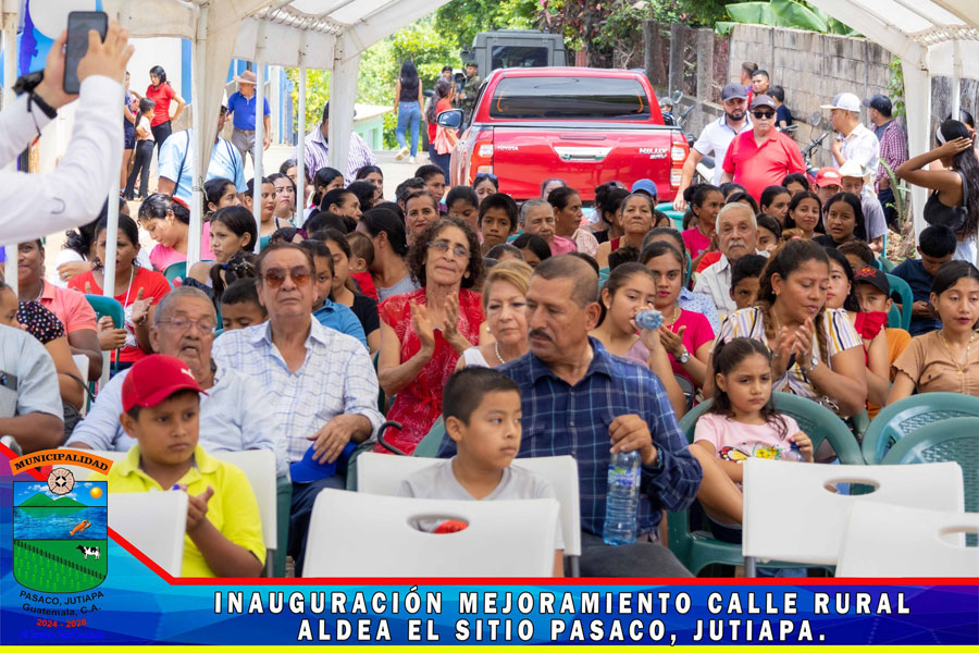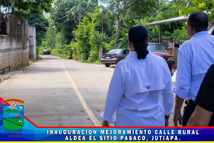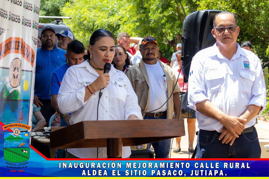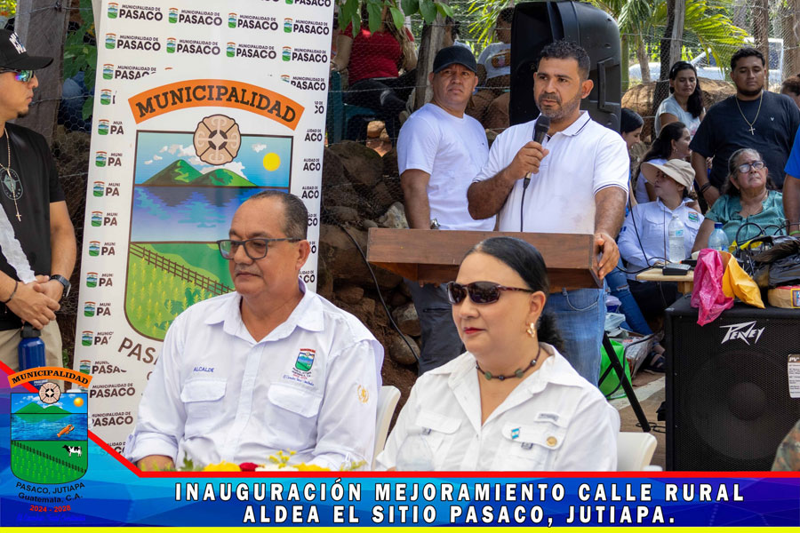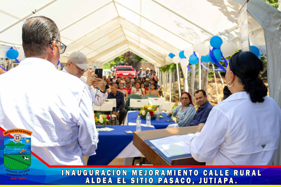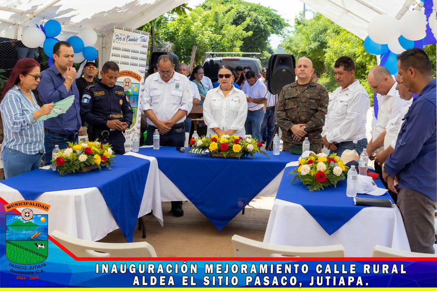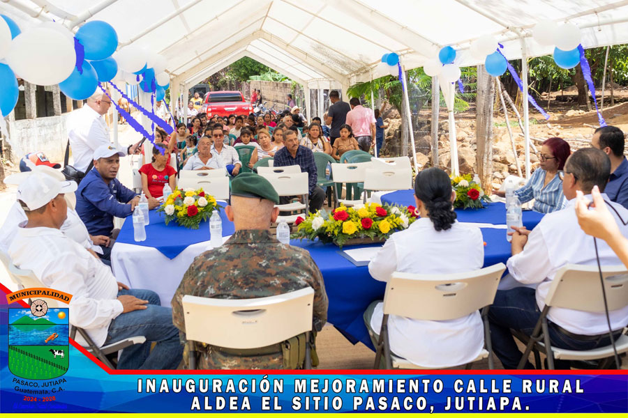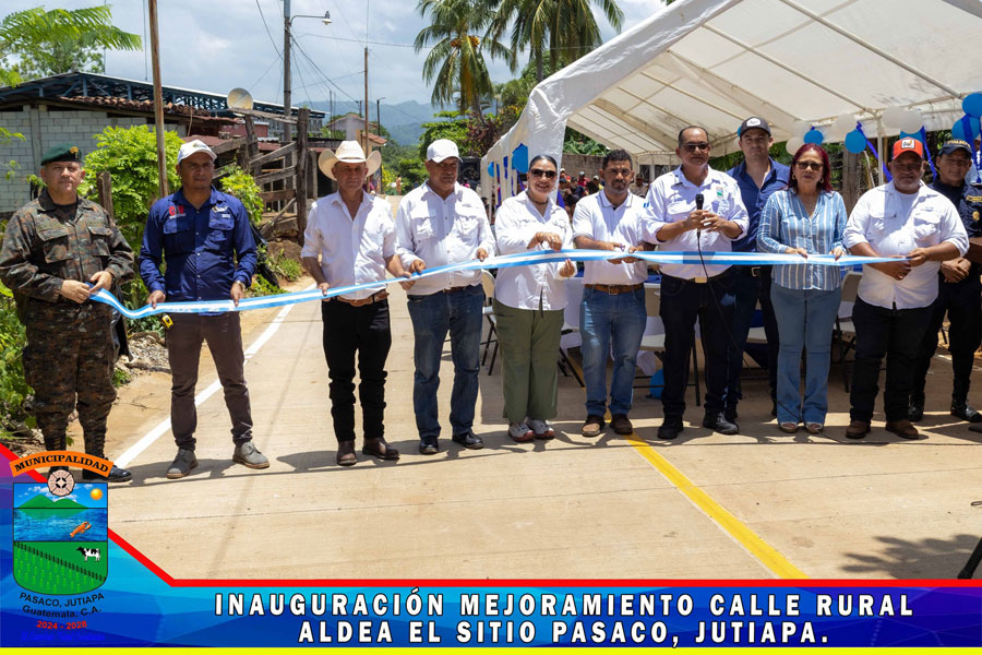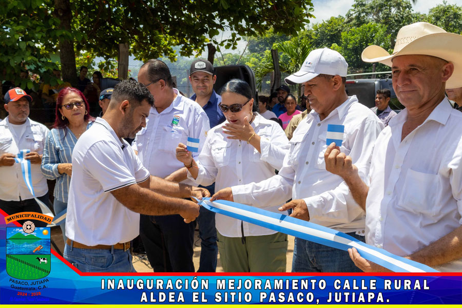 En Aldea el Sitio se realizó la inauguración del proyecto de pavimentación MEJORAMIENTO CALLE RURAL, ALDEA EL SITIO PASACO, JUTIAPA Con la presencia de la Gobernadora Departamental Licenciada Diana María Herrera Zepeda, Alcalde Municipal, miembros de la Corporación Municipal, Autoridades Civiles y Militares, COCODE y Vecinos del Aldea el Sitio y de comunidades cercanas, se realizó la inauguración de la primera fase de la calle de dicha comunidad, le damos gracias a Dios que se da por inaugurado la calle pavimentada, nos llena de mucha alegría porque representa una mejora en el transitar y en el desarrollo de las Aldeas el Sitio, Sunzapote, la Sincuya, Santa Emilia y vecinos del Municipio de Moyuta.