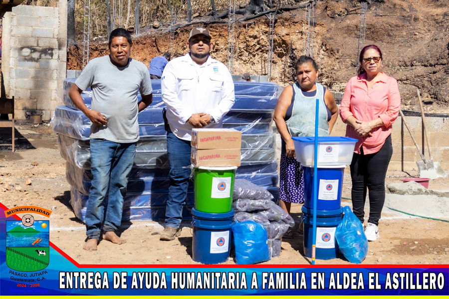 Municipalidad de Pasaco y CONRED entregan ayuda humanitaria a familia afectada por incendio