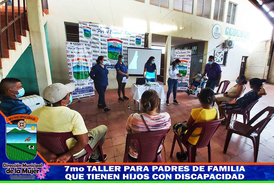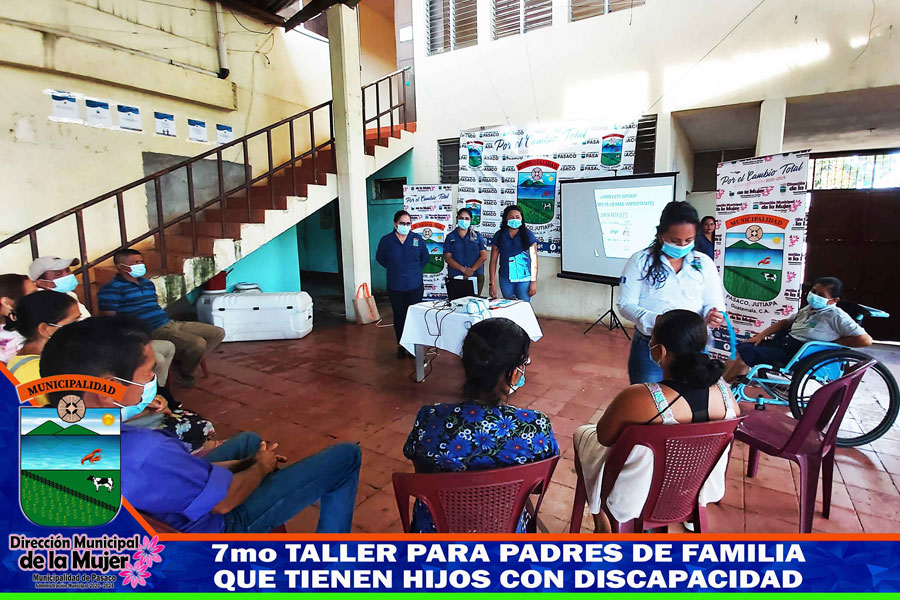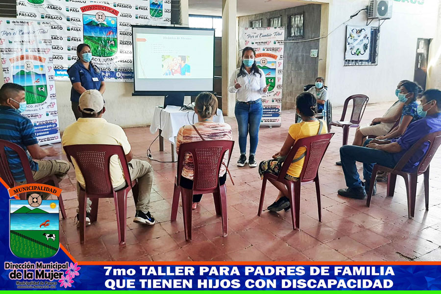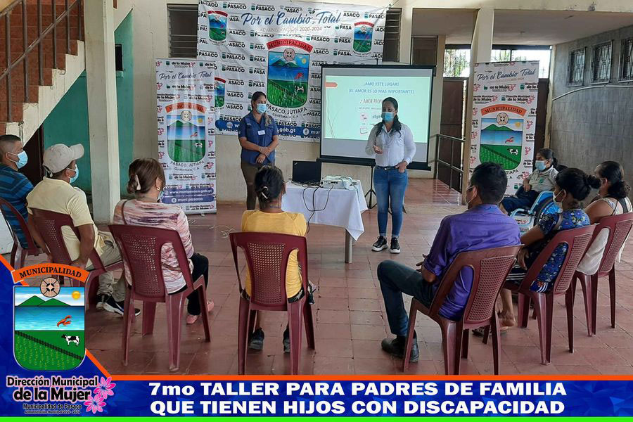 La Dirección Municipal de la Mujer de Pasaco y la Oficia Municipal de Proteccion a la Niñez y Adolescencia, llevaron a cabo, en el Salón Municipal, el 7mo taller de capacitación para padres de familia que tienen hijos con alguna discapacidad con el tema principal fue