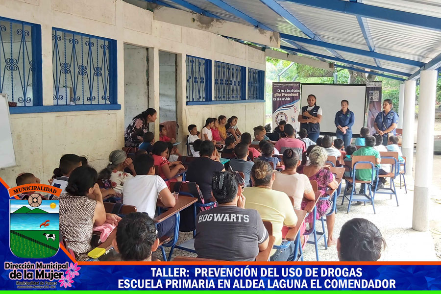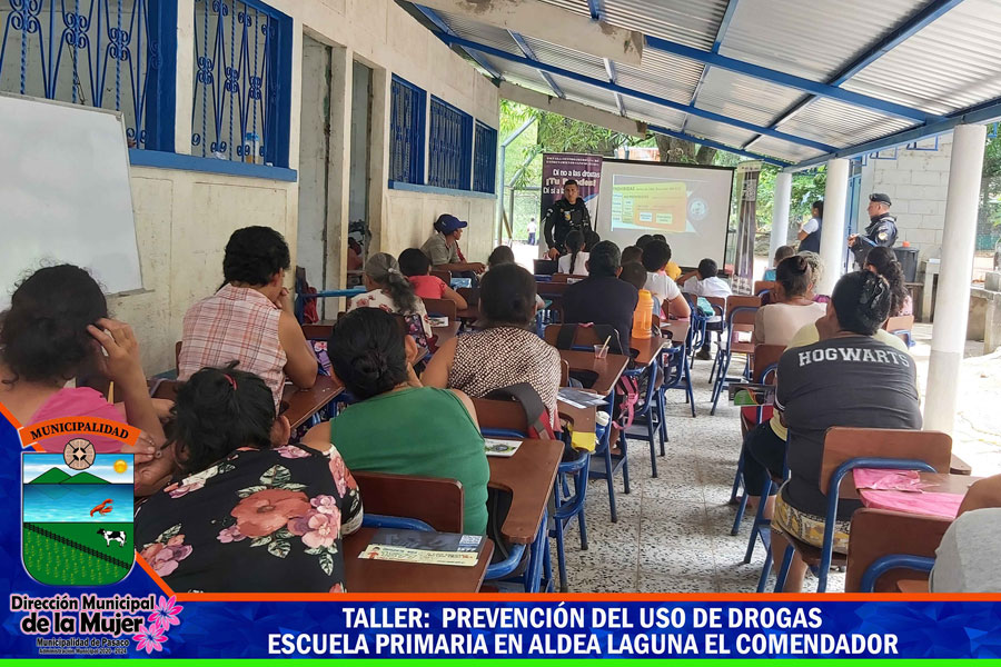 La Municipalidad de Pasaco atraves de Dirección Municipal de la Mujer DMM en coordinación con la Unidad de Prevención Comunitaria de la Violencia UPCV y personal de la Policía Nacional Civil – SGAIA-, realizaron un taller de capacitación a padres de familia y alumnos de primaria de La Escuela, Punta La Laguna, en Aldea el Laguna El Comendador taller que consistió en orientar a los padres de familia y en temas sobre la prevención y evitar en el consumo de droga y para los niños actividades recreativas siempre enfocadas en la prevención en el consumo de drogas.