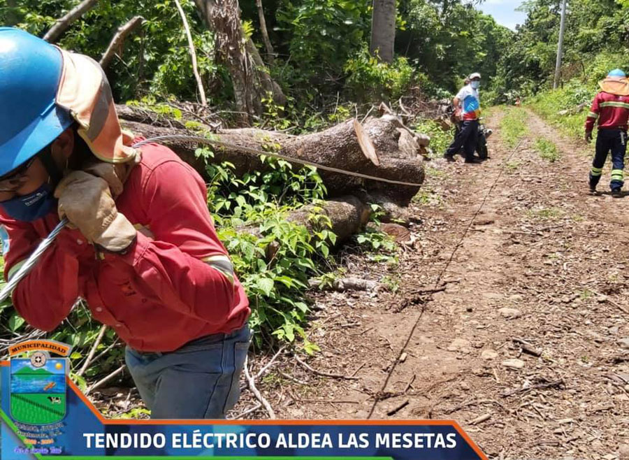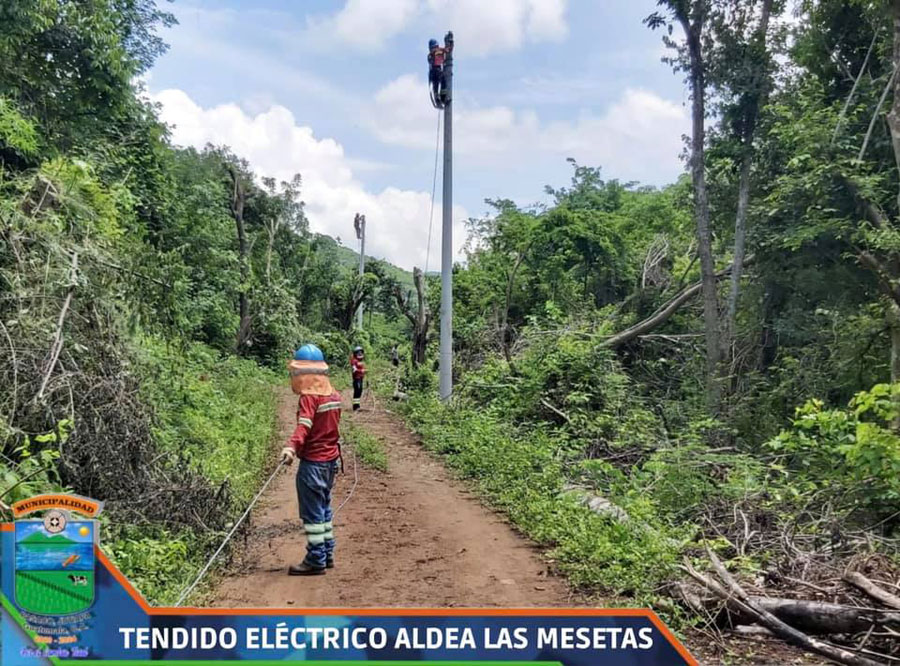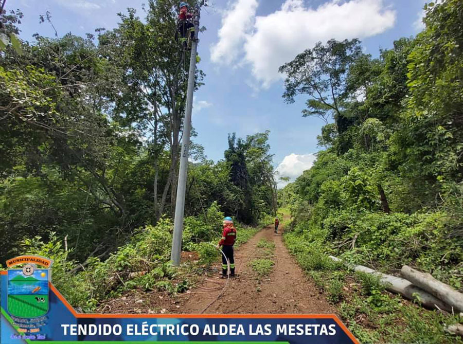 En Aldea Las Mesetas del Municipio de Pasaco se está llevando a cabo el tendido eléctrico, mismo que está proyectado a finalizarlo en agosto 2021.