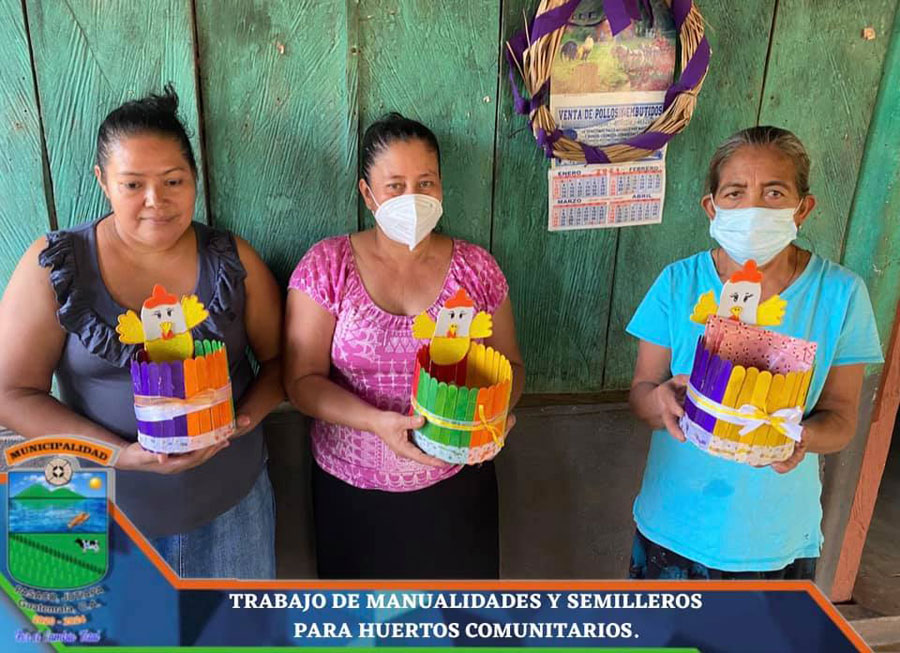 La oficina Municipal de Seguridad Alimentaria y nutricional y la oficina de unidad de gestión ambiental (UGAM) de la Municipalidad de Pasaco, en conjunto con el Ministerio de Agricultura, Ganadería y Alimentación (MAGA) realizaron la visita a la comunidad del Sitio, con el motivo de realizar trabajo de manualidades y la creación de semilleros para huertos comunitarios con lideresas de la comunidad.